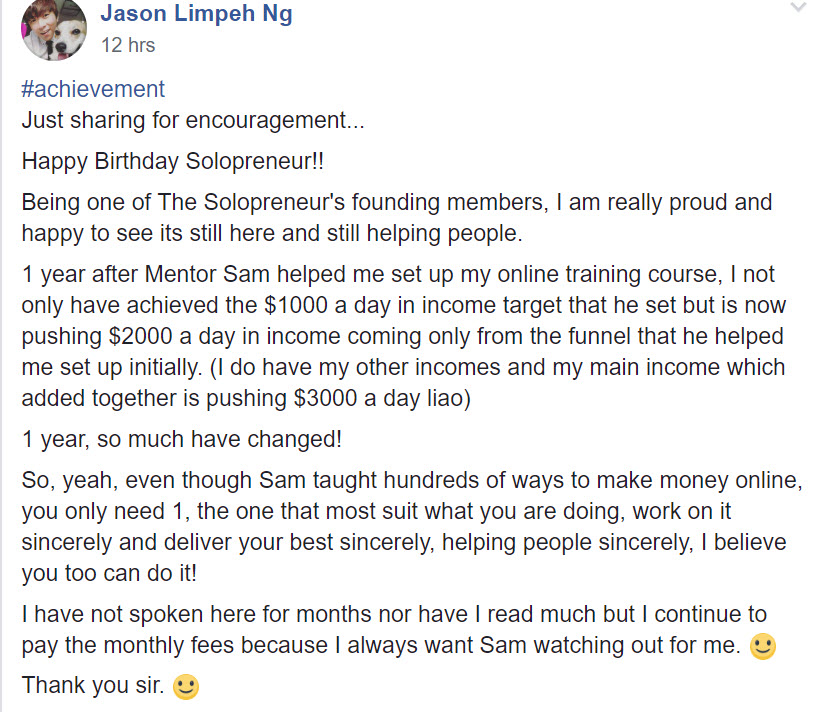 Here’s what my students said about my coaching. (Solopreneur is the predecessor of the Academy. The Academy is the new improved version)